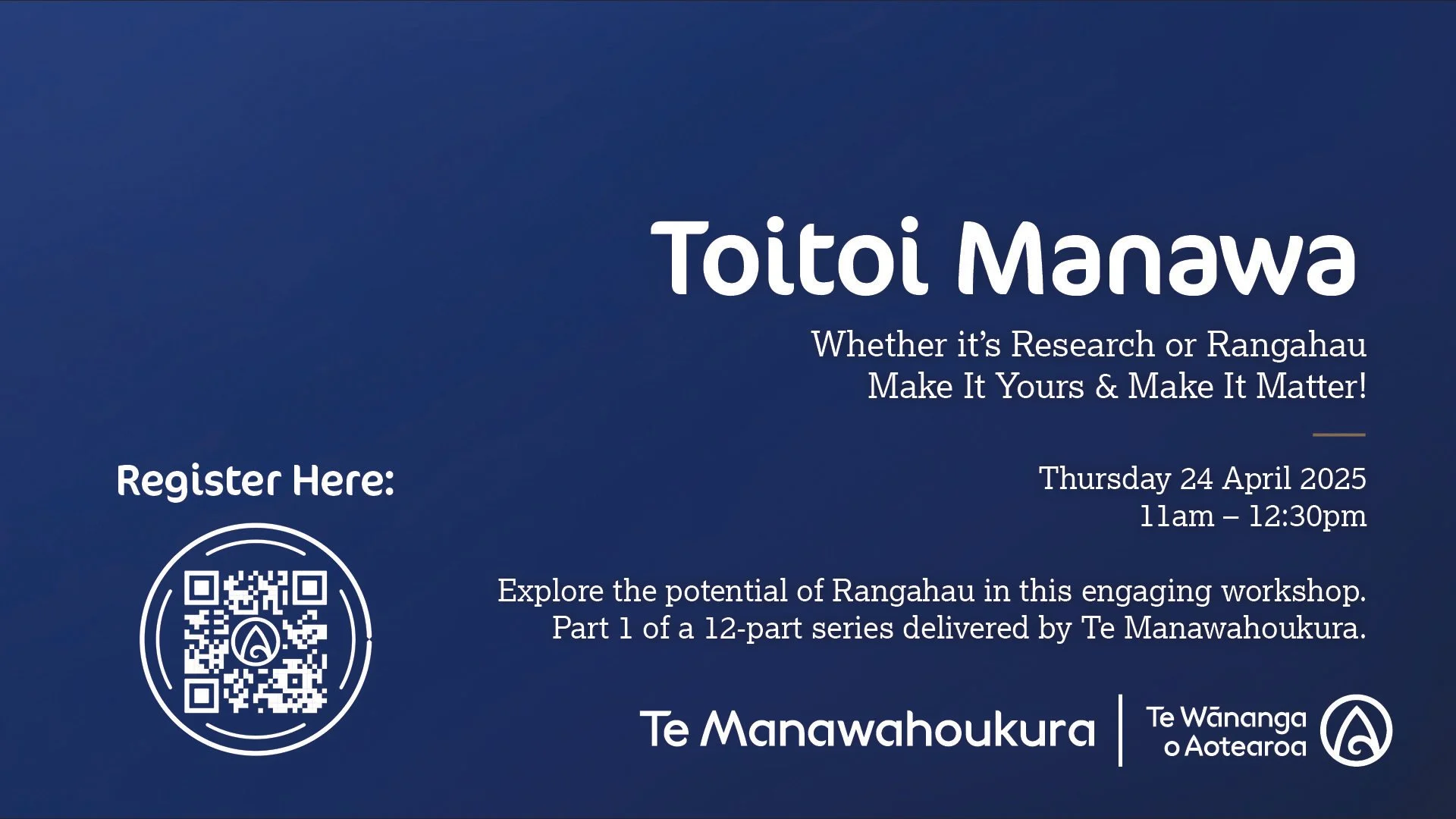 2025 Online WorkshopsEvery Friday 11am - 12.30noon Introducing Dr. Shelley Hoani Workshop 1 Video Link Link Temporarily Unavailable Introducing Dr. Maree Sheehan Rangahau Auaha Presentation Online Workshop Link Introducing Dr. James Berghan Online Workshop Link Interviews as a Rangahau Method Presentation Introducing Dr. Kimiora Raerino (Re)framing Images & Tino Rangatiratanga Presentation Online Workshop Link Introducing Dr. Tara McAllister Tātari Raraunga Tatau Online Workshop Link Introducing Dr. Tim Angeli-Gordon Online Workshop Link Tātari Raraunga Tatau Presentation Tono Rangahau Presentation Introducing Dr. Mireille Consalvey Online Workshop Link Introducing Dr. Shelley Hoani Online Workshop Link Taonga Tuku Iho Presentation Introducing Dr. Marama Salsano Online Workshop Link Creative Writing Presentation Introducing Dr. Sacha McMeeking Online Workshop Link Arotake Mātātuhi Introducing Kane Milne Online Workshop Link